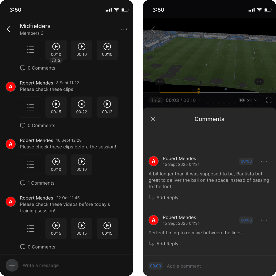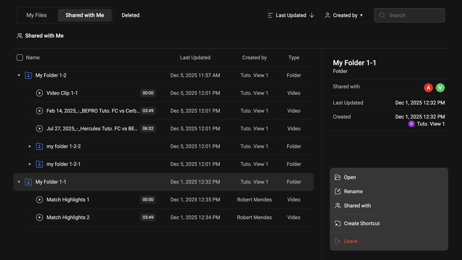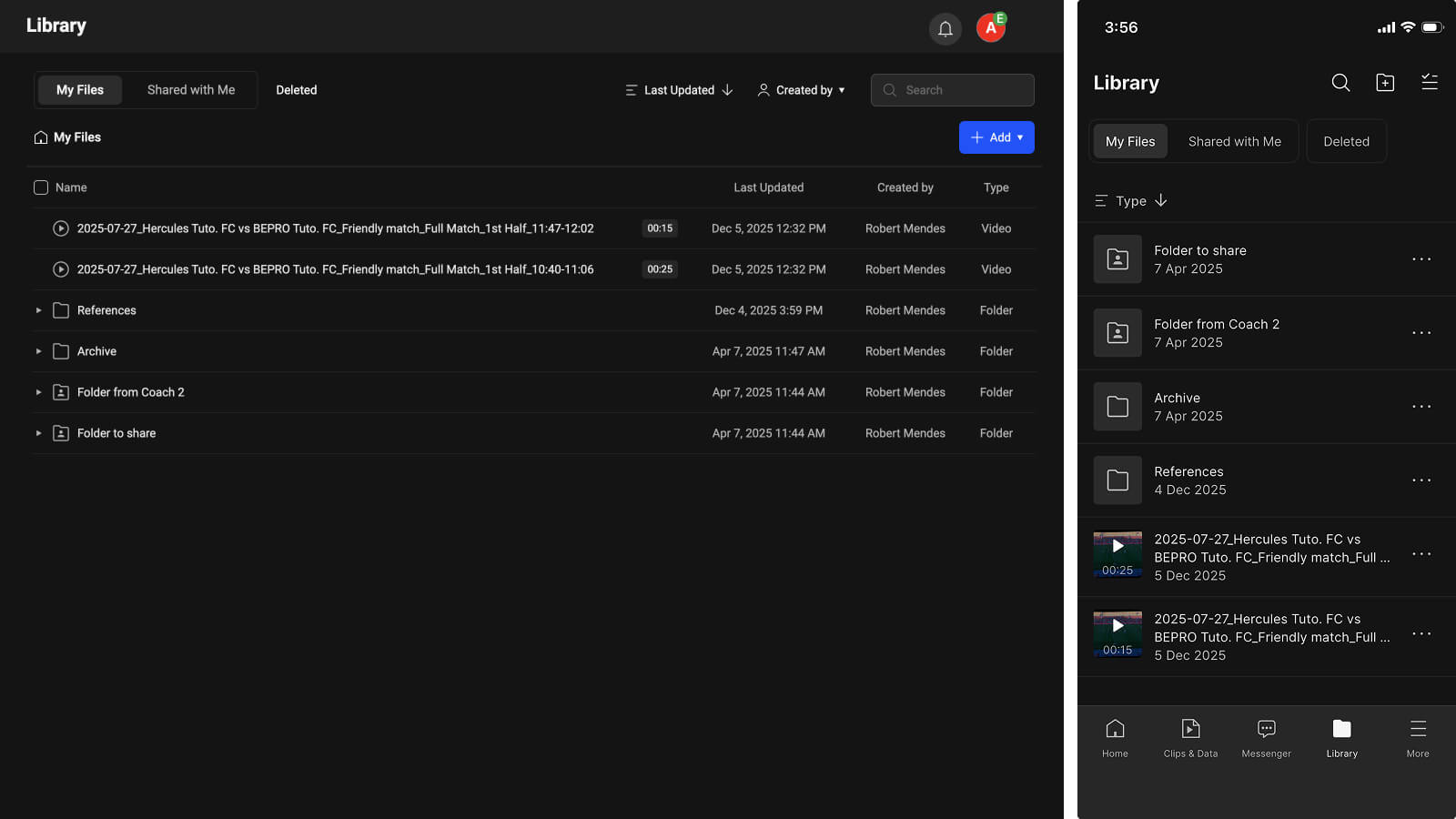Save match preparation videos and files to your library and share folders with team members for collaborative resource management.