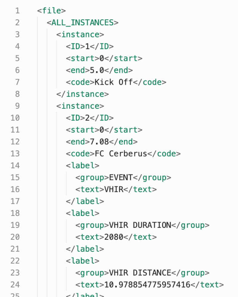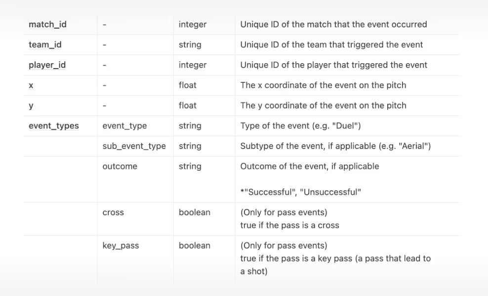 Captured through optical tracking technology, this dataset records every player's x,y coordinates 25 times per second across a full match, including event data and guidance documentation.