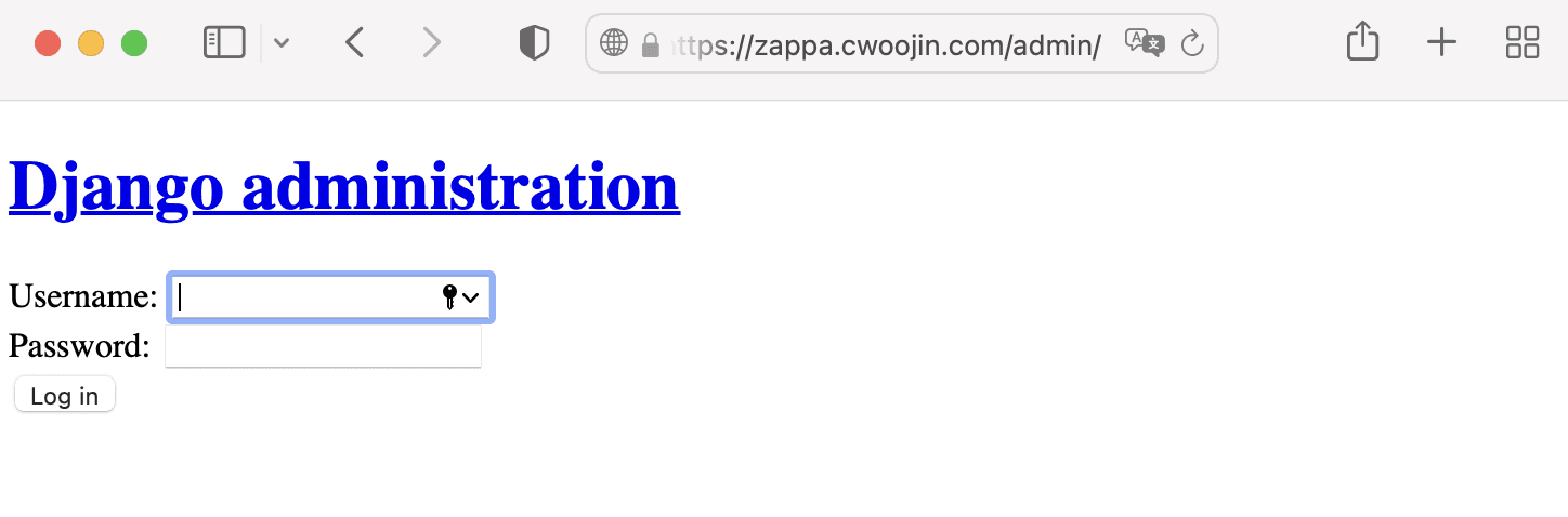 등록된 도메인에 대한 연결이 성공적인지 확인합니다. (https://zappa.cwoojin.com.)