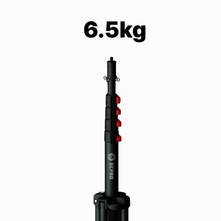 The maximum height of the BEPRO Quadpod is 7.6m when fully extended.
